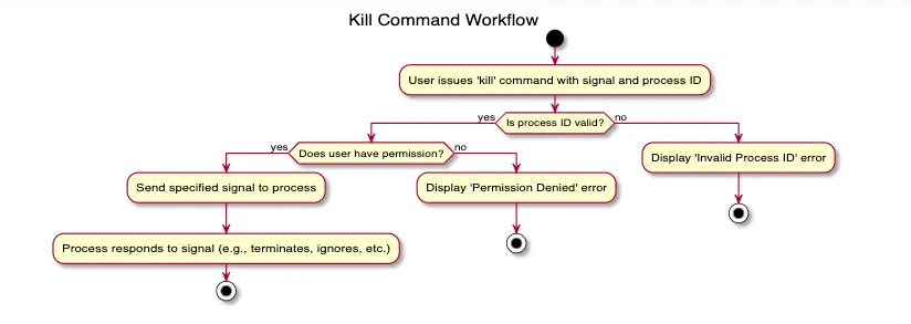 命令通过向具有给定PID的进程发送指定的信号来工作。如果未指定信号,kill