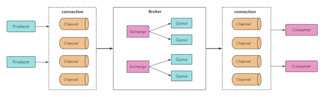 Binding)起来,定义了消息的路由规则;生产者将消息发布到交换机,交换机根据绑定规则将消息路由到一个或多个队列;